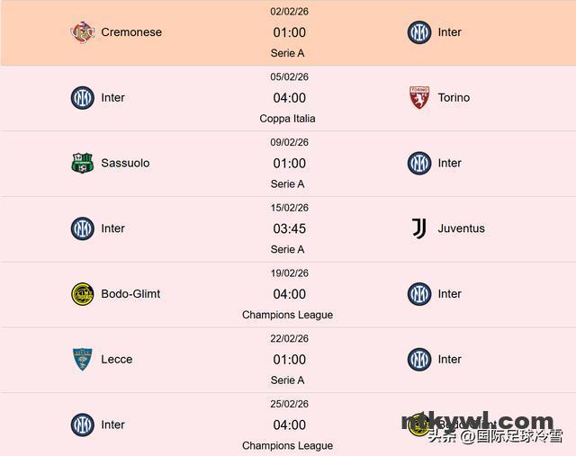 因为此后国米要对阵尤文,要去寒冷的挪威对阵博德闪耀,3月联赛里也将陆续对阵AC米兰、亚特兰大、罗马等队,如果欧冠晋级16强,届时赛程难度直线上升。