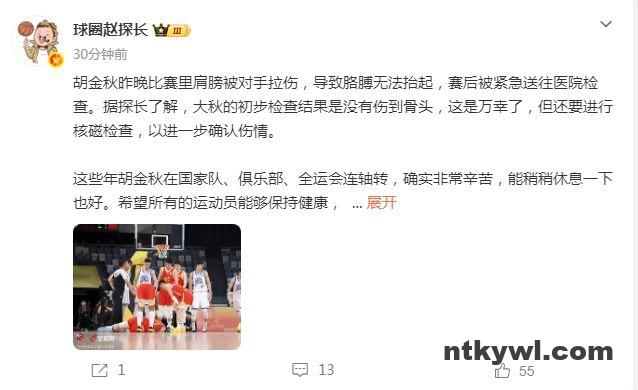 至于在广厦战胜宁波的比赛,胡金秋不慎被对手拉伤肩膀,导致他无法抬起胳膊,赛后也是被球队紧急送往医院检查。根据球圈赵探长的报道:“大秋(胡金秋)的初步检查结果是没有伤到骨头,这是万幸了,但还要进行核磁检查,以进一步确认伤情。”