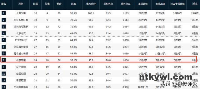 但山东的内线确实在冲抢方面占据优势,场均14.4个前场篮板球高居第一,全队场均可以拼下39.8个篮板球。