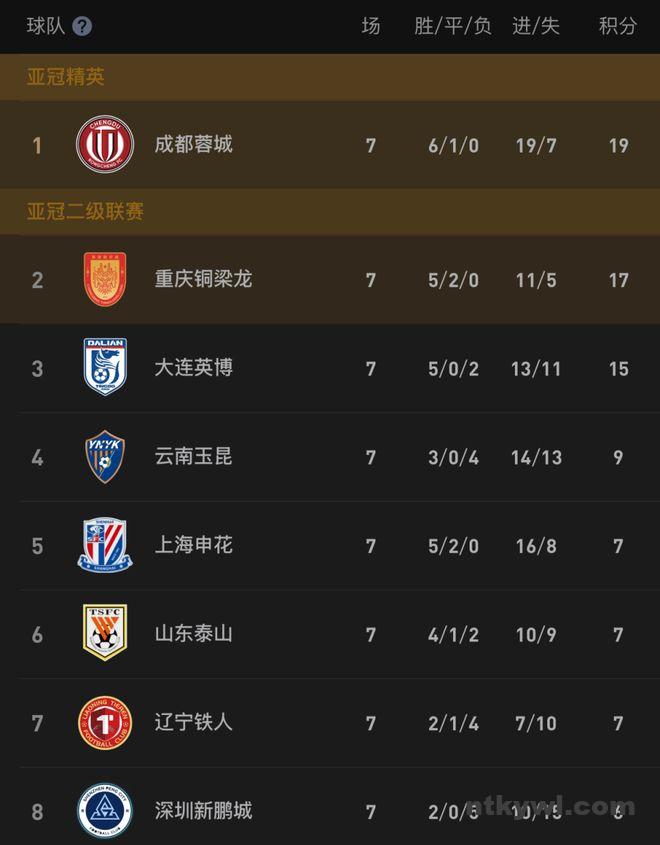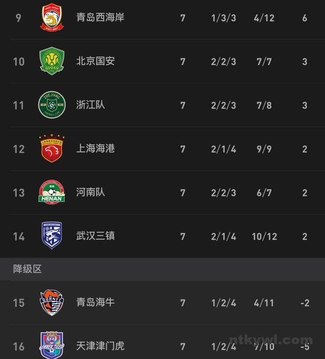 申花豪取4连胜并且开局7轮不败,而海牛遭遇3轮不胜。由于前些年比赛涉及“假赌黑”,申花和海牛分别被罚扣10分和7分,因此7轮战罢申花积分为7分升至第5位,而海牛依然是-2分,排名倒数第2位。