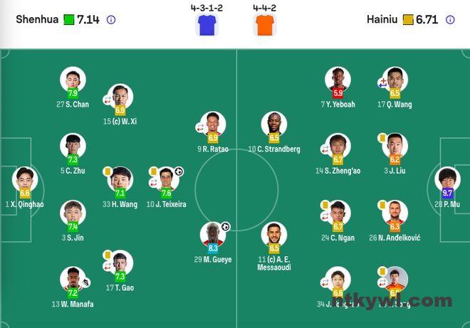 前卫:17-高天意(65’43-杨皓宇)、9-拉唐(F)(65’18-刘诚宇)、10-特谢拉(F)(77’30-谢鹏飞)
