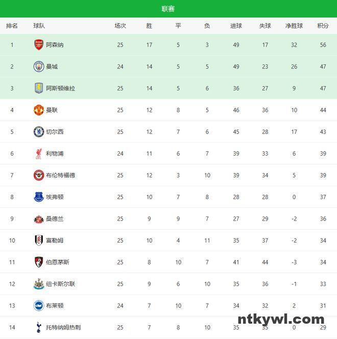 北京时间2月8日凌晨,英超第25轮如期进行,排在积分榜前五的多家豪门联手出击,领头羊阿森纳主场3-0桑德兰,以9分的优势领跑联赛;切尔西客场3-1副班长狼队,帕尔默半场上演帽子戏法,成为队史第一人;维拉大爆冷门客场1-1伯恩茅斯队;曼联主场2-0完胜热刺,卡里克带队豪取4连胜,稳居积分榜第四;其他比赛,伯恩利主场0-2不敌西汉姆联;埃弗顿客场2-1击败富勒姆;纽卡斯尔联主场2-3输给了布伦特福德,真的是几家欢喜几家愁啊!
