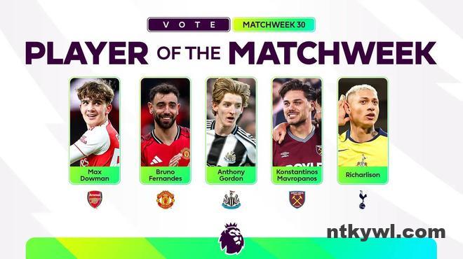 北京时间3月17日,英超官方公布了第30轮比赛中的最佳球员候选名单,其中道曼、B费、戈登、马夫罗帕诺斯、里沙利松在列。